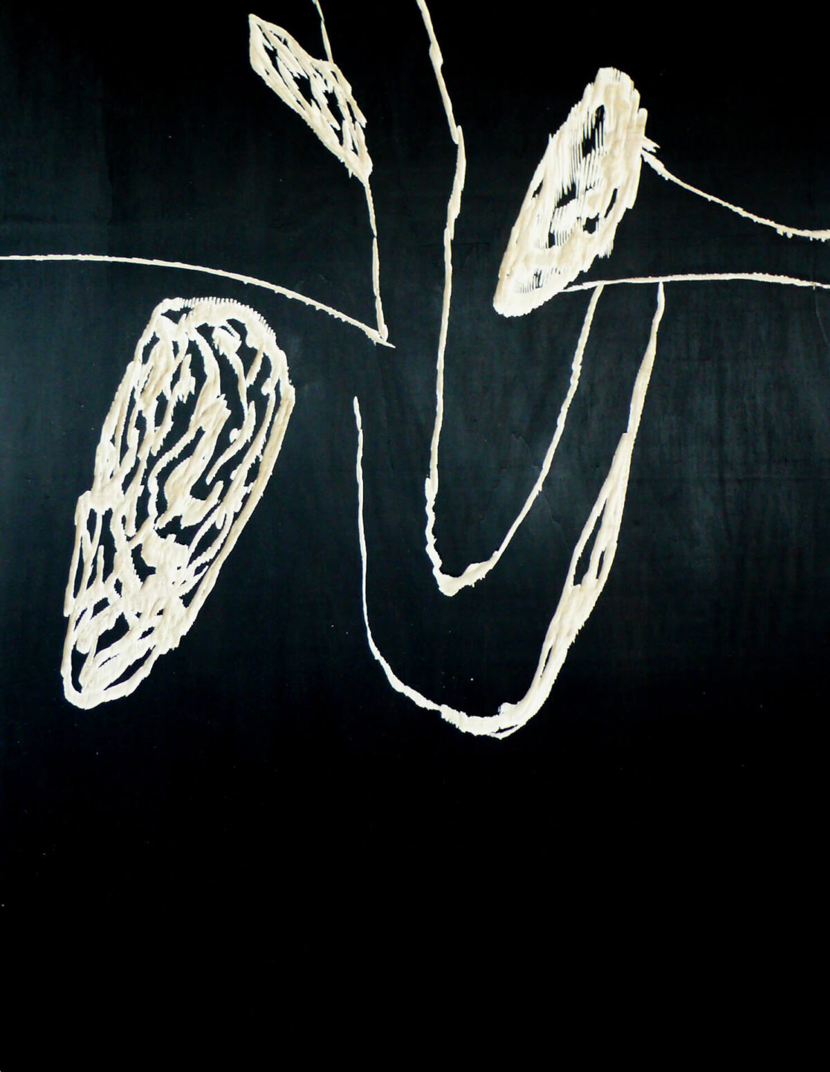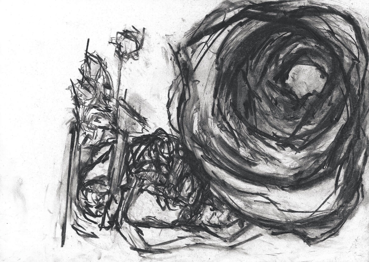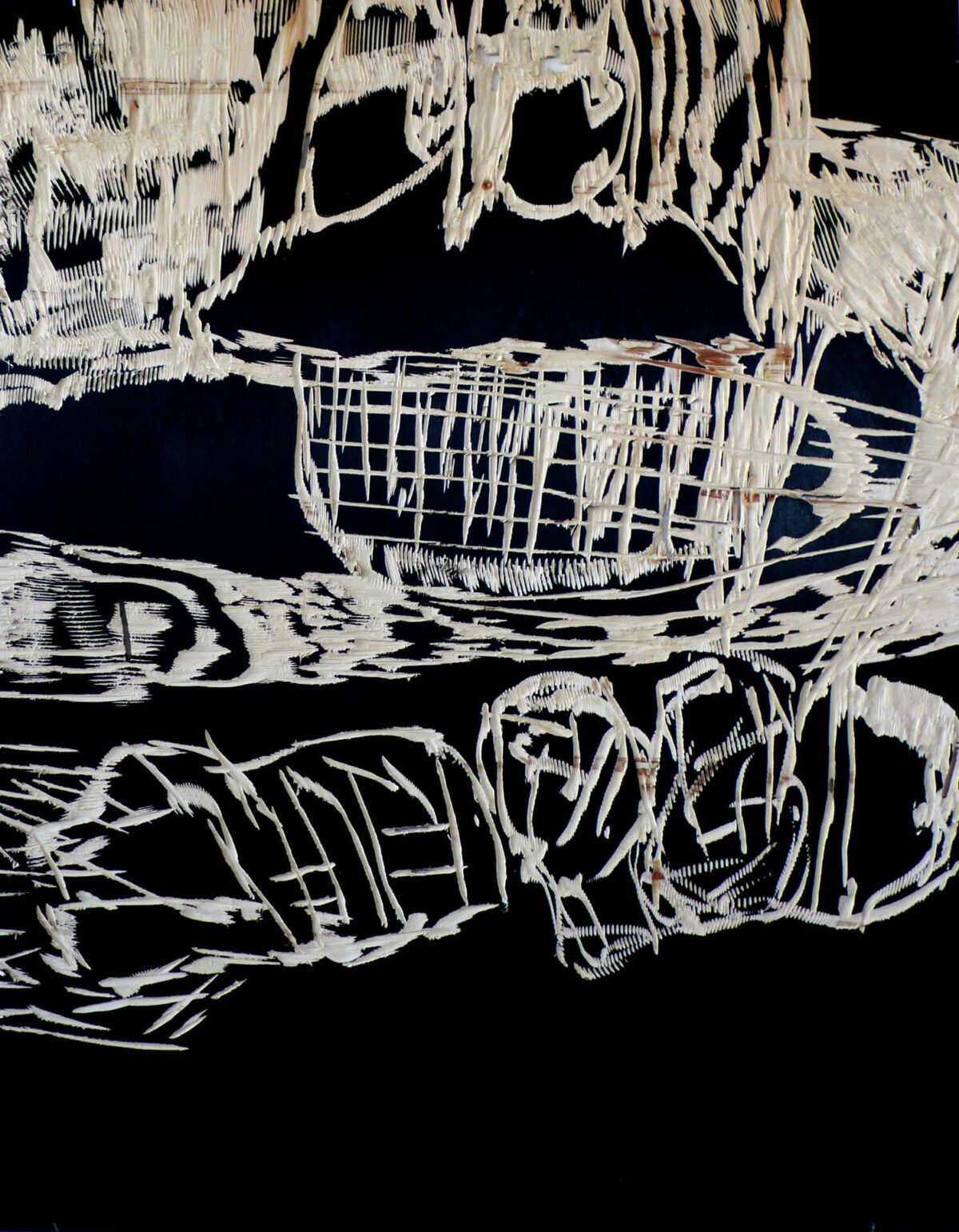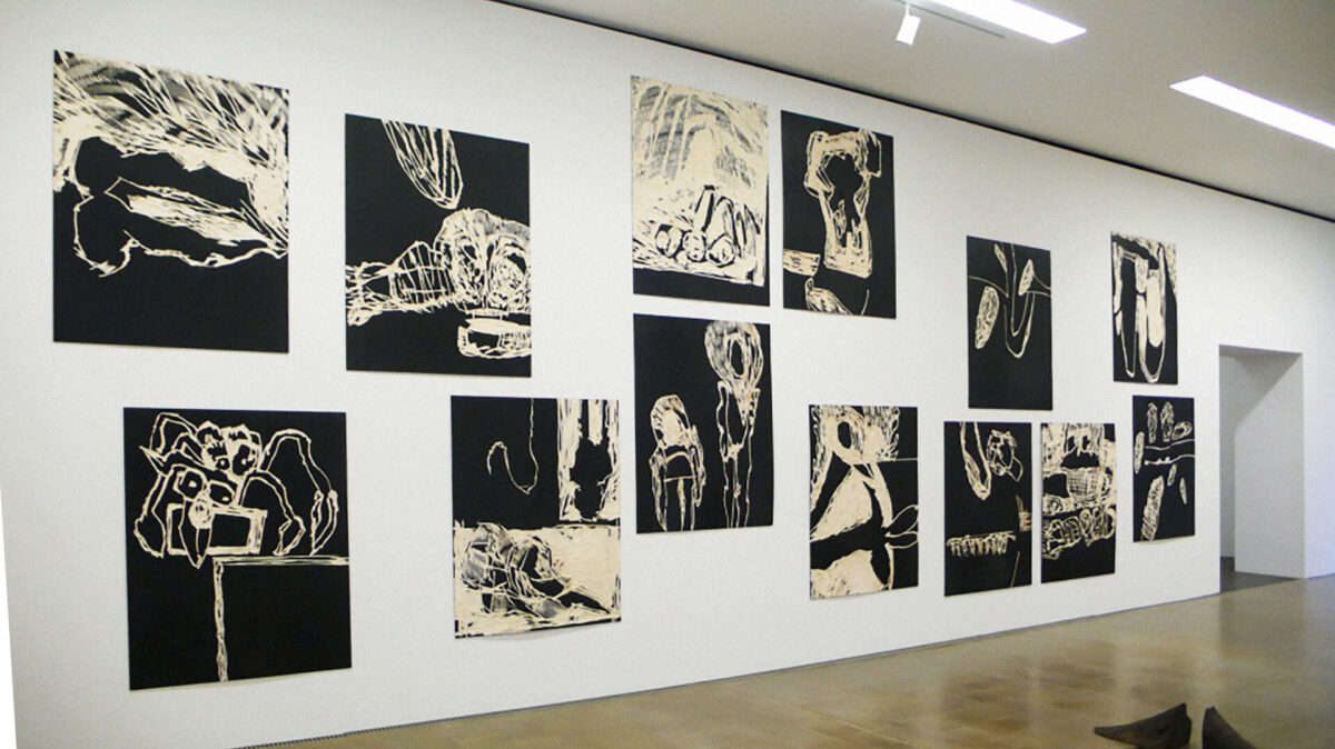 Die Kohlezeichnungen im Format A4 bildeten den Ausgangspunkt für die Gestaltung von schwarzen Bildtafeln aus Holz, die mit der Elektrosäge zeichnerisch bearbeitet wurden. Das Verfahren hatte sich aus dem traditionellen Holzschnitt entwickelt (siehe die mehrfarbigen Beispiele am Anfang). Der Druckstock wurde nicht mehr eingefärbt und zum Druck verwendet, sondern die Holzplatte wurde zu einem selbständigen Werk. Mit der dreizehnteiligen Serie BOUQUET DE FLEURS DU MAL I entstand 2011 eine erste Fassung des Themas in einer wandfüllenden Ausführung.