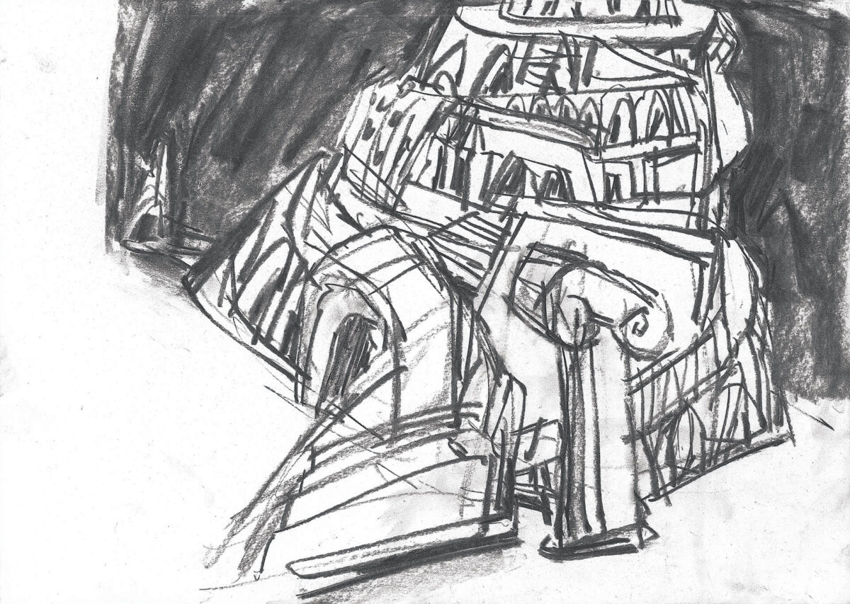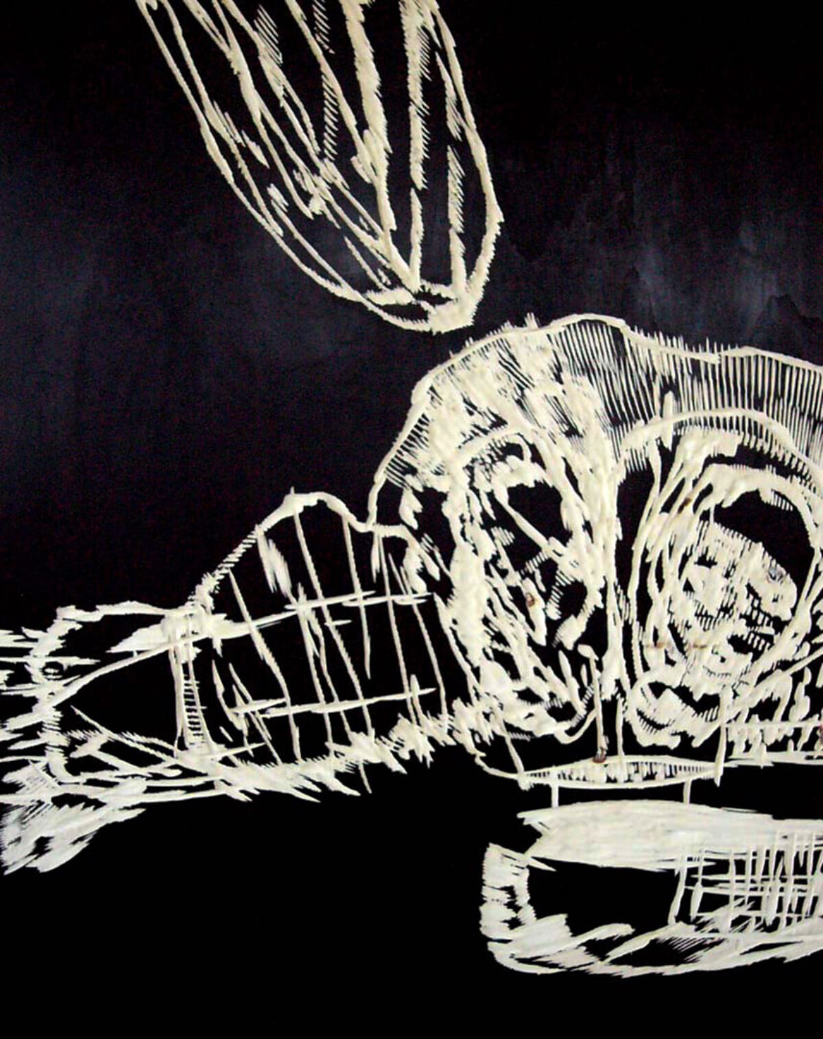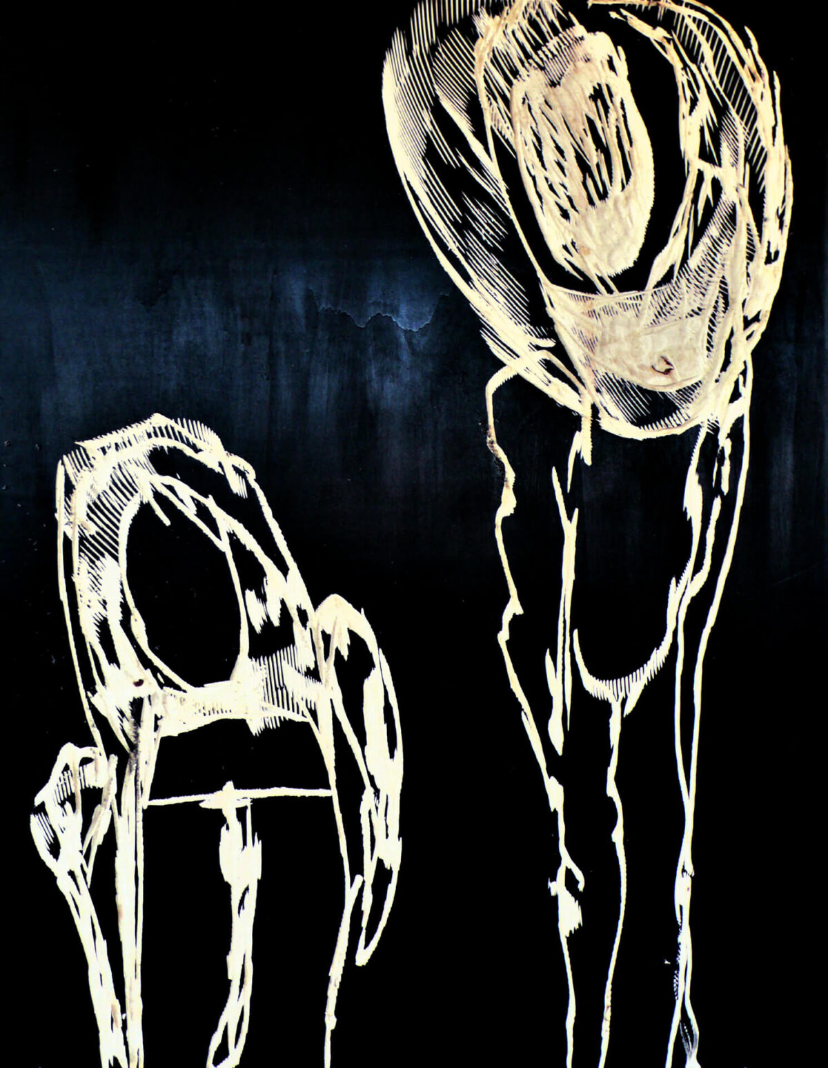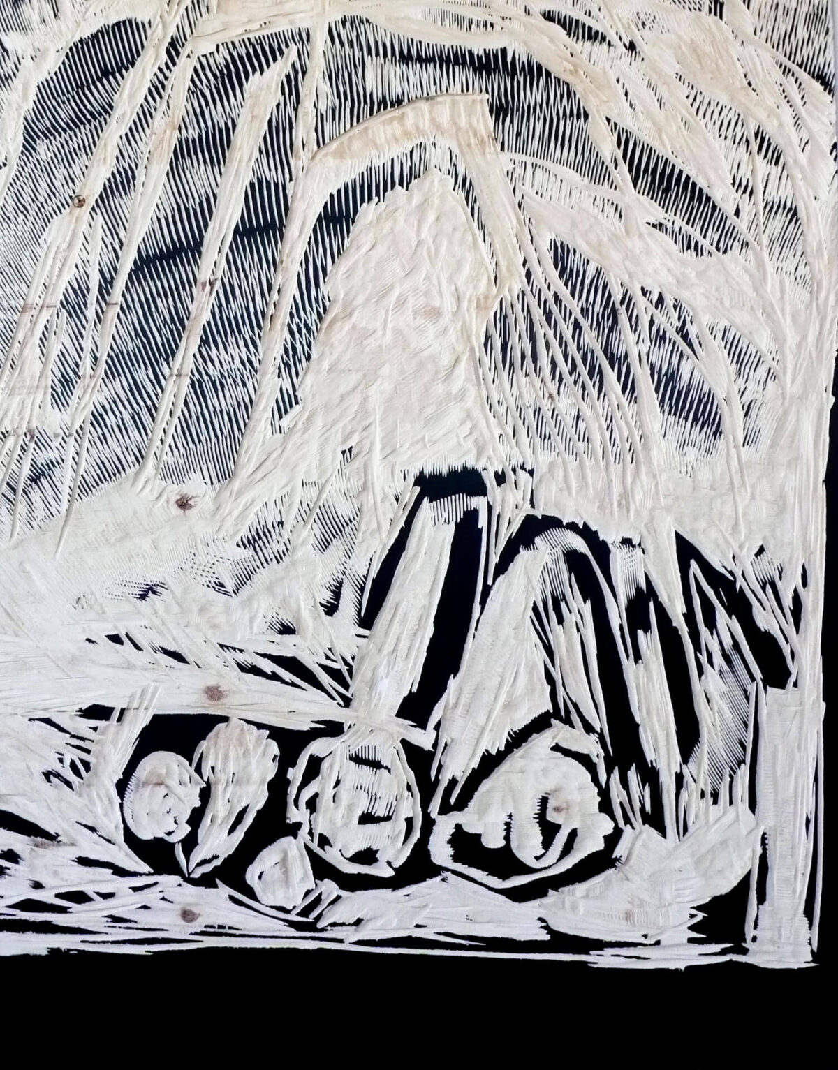 Die Kohlezeichnungen im Format A4 bildeten den Ausgangspunkt für die Gestaltung von schwarzen Bildtafeln aus Holz, die mit der Elektrosäge zeichnerisch bearbeitet wurden. Das Verfahren hatte sich aus dem traditionellen Holzschnitt entwickelt (siehe die mehrfarbigen Beispiele am Anfang). Der Druckstock wurde nicht mehr eingefärbt und zum Druck verwendet, sondern die Holzplatte wurde zu einem selbständigen Werk. Mit der dreizehnteiligen Serie BOUQUET DE FLEURS DU MAL I entstand 2011 eine erste Fassung des Themas in einer wandfüllenden Ausführung.