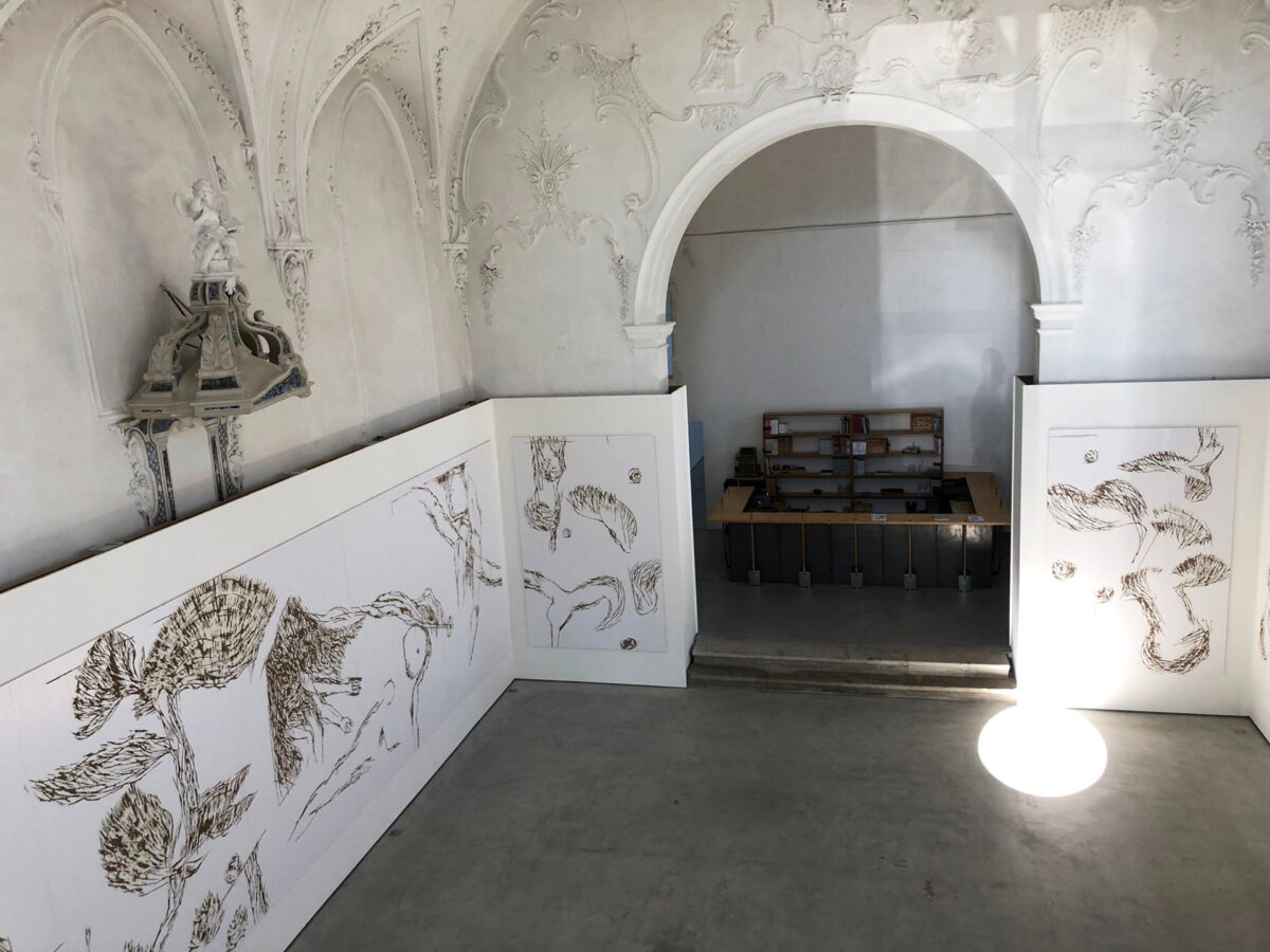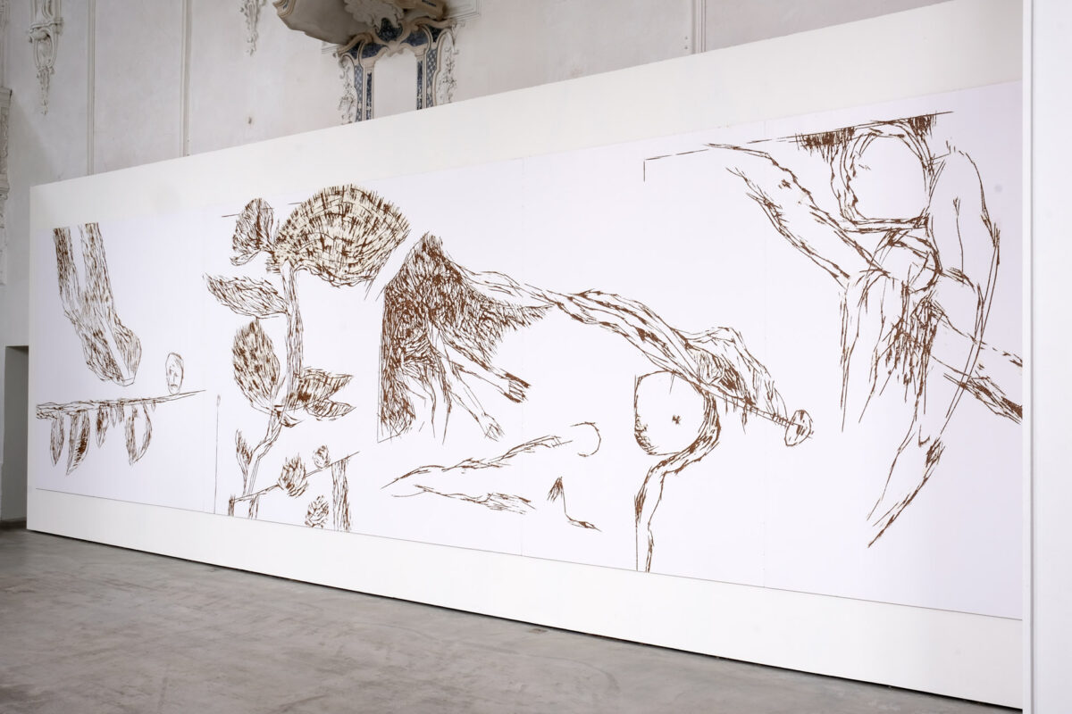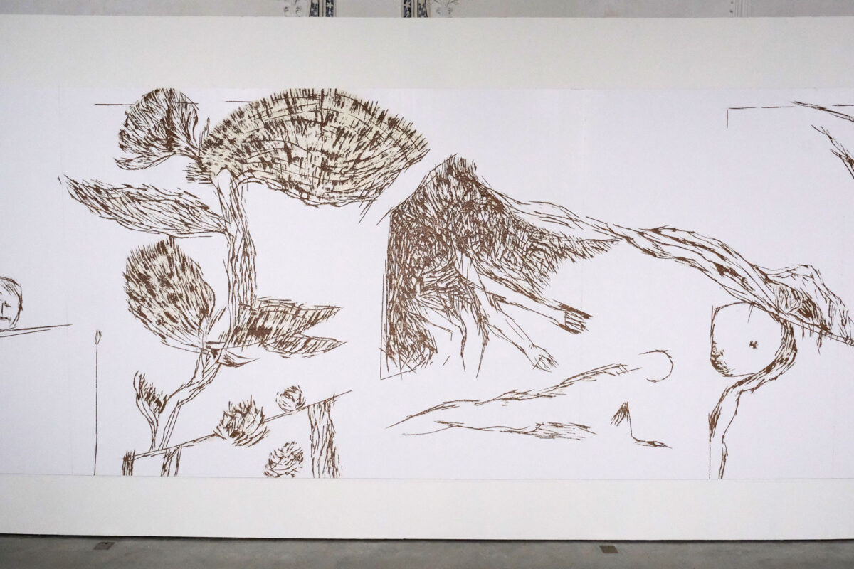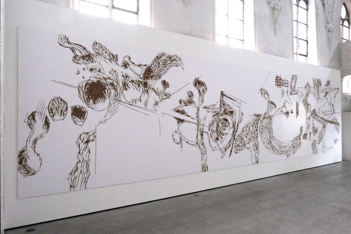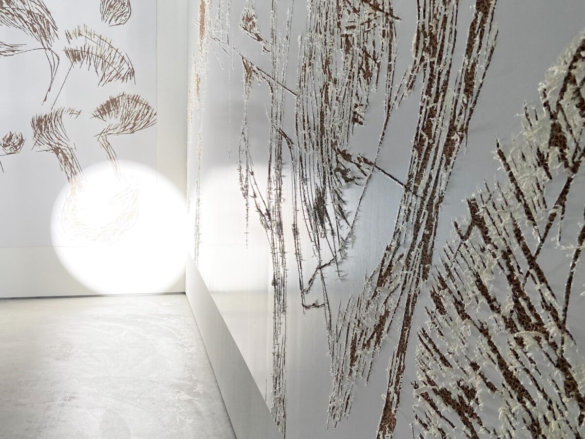Die Wandzeichnungen lesen sich wie Landkarten, in welche die Spuren eines noch wenig erschlossenen Gebietes eingeschrieben sind.
